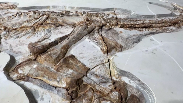 据了解,此次发现的两具恐龙,是化石保护相关工作人员在巡查过程中,发现部分裸露的化石骨骼,为避免次生破坏,经自然资源部批准,进行了抢救性挖掘修复。