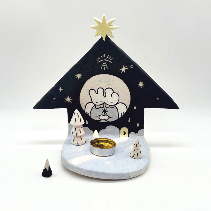 我目前的创作是围绕本科时期绘制的一系列角色形象展开,灵感来源于个人生活以及对周边朋友的观察记录,毕设《柔软的必需品》是后续一系列创作的雏形。喜欢探索插画在不同材质上的可能性,毕业后想探索一些新的表达方式开始接触陶瓷,目前以插画结合陶瓷的方式进行创作。