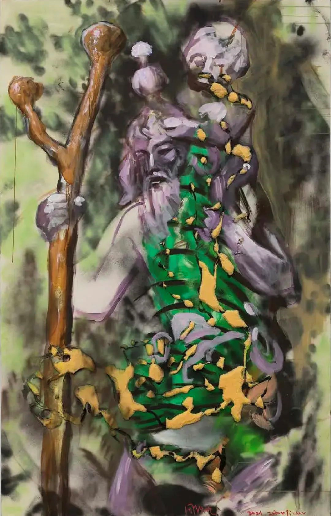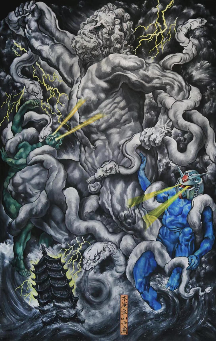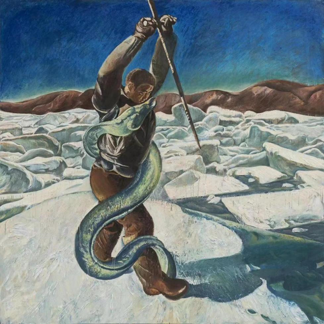 在多年的艺术实践中,对于中国目前的艺术与普通观众间的鸿沟,也不断有着新的认识,同时意识到了这种鸿沟在如今依旧非常巨大的文化现实。所以在实践的过程中愈发坚持从传统民间艺术出发的创作逻辑,使自己的绘画更加能够与当下普通人的观看发生联系,以此作为基础,再进行更深入的绘画形式与语言的探索。在绘画内容上则更倾向于个人对经典文学作品的解读,一是因为个人是一个文史爱好者,二则是利用经典的文学作品在与观众建立观看联系上有着天然的文化基础。