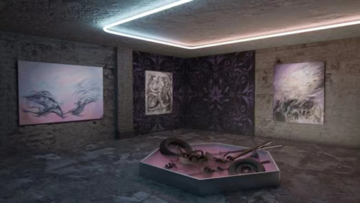 我的两个展览都是关于“绘画”,它们在同一空间展出。个展《与孟菲斯蓝调一起被困在车里》,呈现了我近期的全新创作,以对商业元素的思考、拆解和重构延续其在“剩余”中寻求更多可能性。在这次展览上做了很多与家具有关的作品,运用绘画元素,包括布展形式,每个空间都像一个巨大的绘画空间。而个展《异教徒》则是古典与媚俗、虔诚与散漫的再次碰撞与耦合,展示了我从主流的文化与符号系统中逃逸的全新路径。