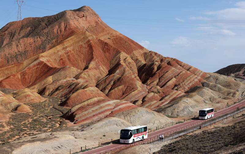 9月11日,甘肃张掖,极具特色的丹霞地貌吸引了大批游客。刘占崑/摄