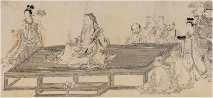 北宋李公麟《维摩演教图》中的榻、凭几和脚踏造型虽然沿袭古制,为箱体式结构,但线脚却有了很大的改变,线脚工艺十分丰富,家具边抹出现混面和冰盘沿的做法,是古代家具较早出现采用这种线脚工艺的画例。