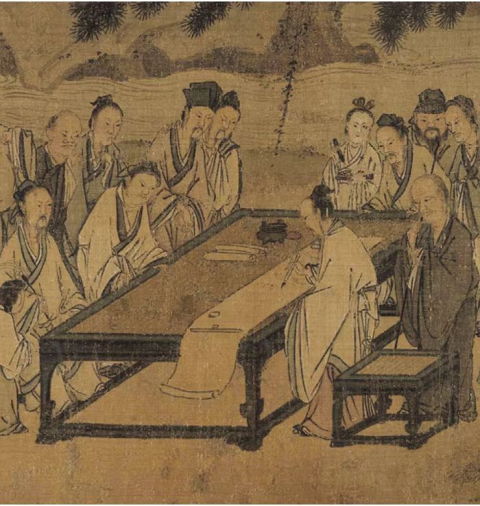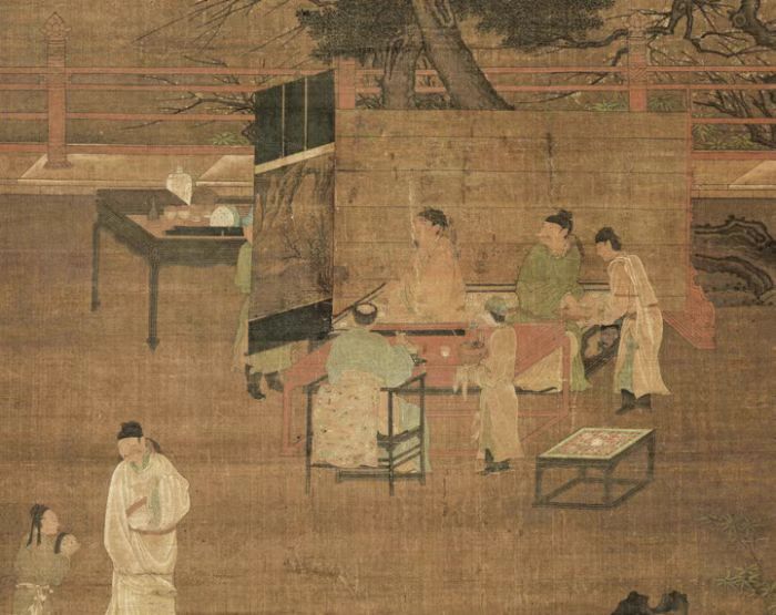 南宋马远《西园雅集图》中的黑漆四面平大画桌和四面平机凳
