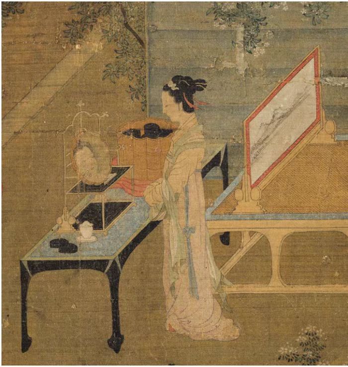 北宋王诜《绣栊晓镜图》中的四面平条桌、四面平卧榻