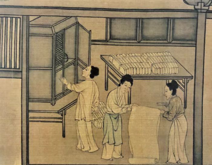 南宋楼璹《蚕织图》中的平头案、叠顶橱