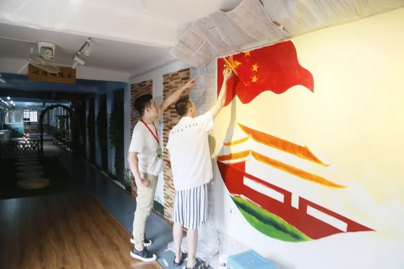 参与墙画绘制的服刑人员小张说:“我是2012年和人打架进来的,原来没读过什么书,反而是在监狱的这些年学的知识最多。”