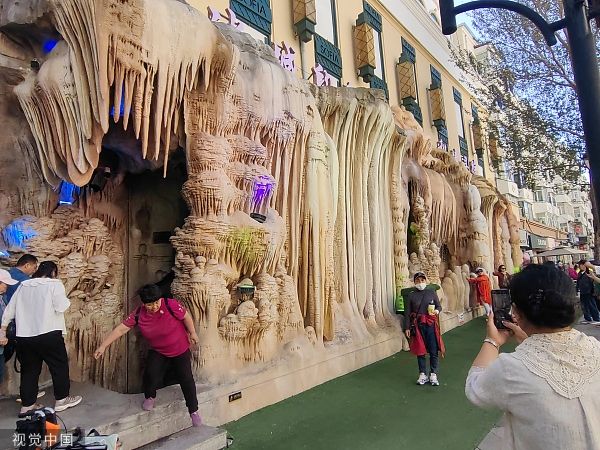据了解,中央大街上的一些商家为吸引眼球,招徕顾客,打造了多处网红景点,为这条百年老街增添了更多的人气。