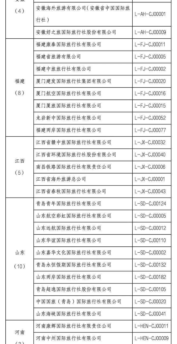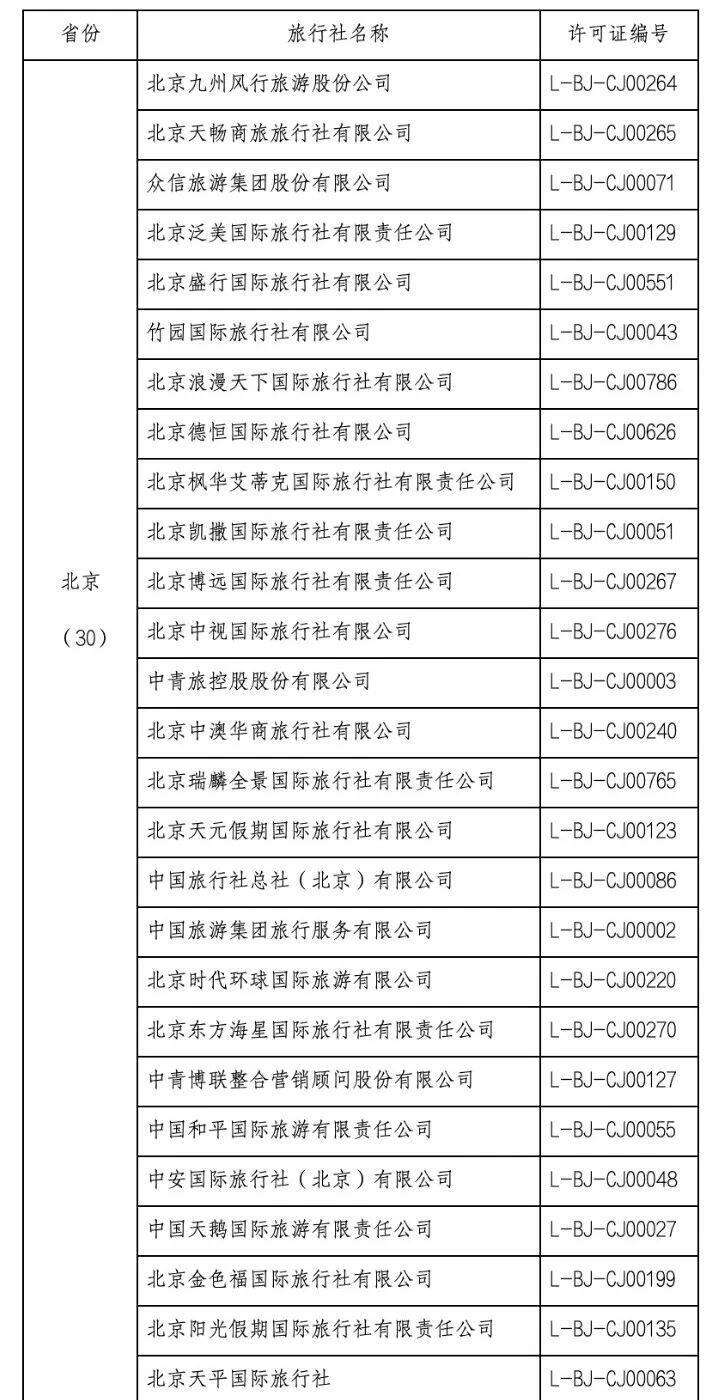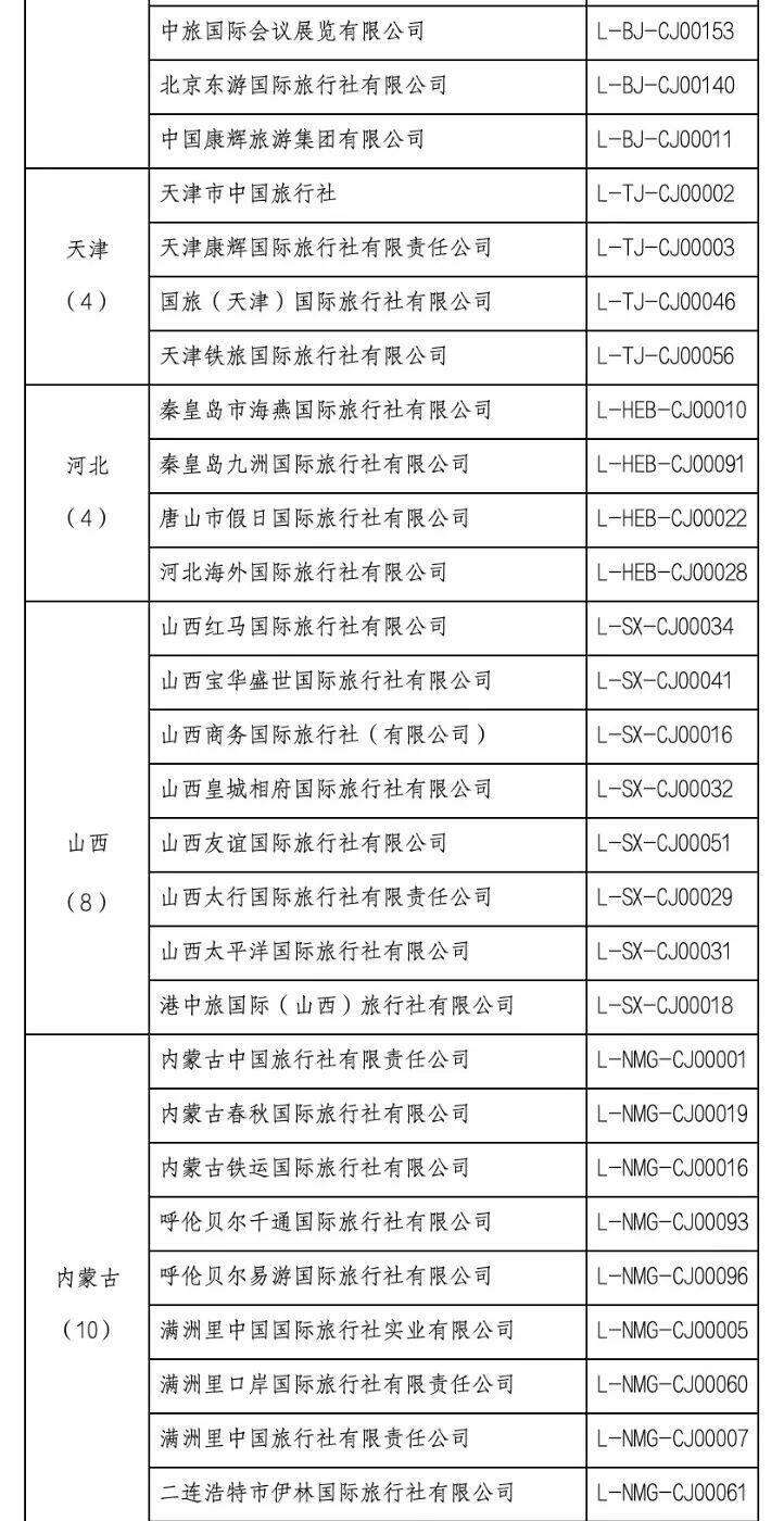 经营中国公民组团赴俄罗斯免签旅游业务旅行社名单(第一批)