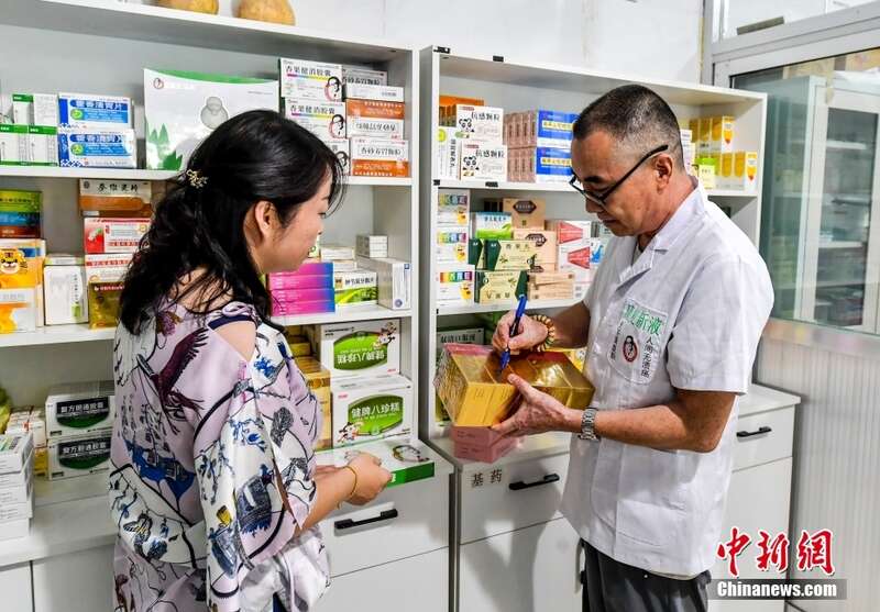 乡村医生谷平在诊所里叮嘱患者用药剂量。