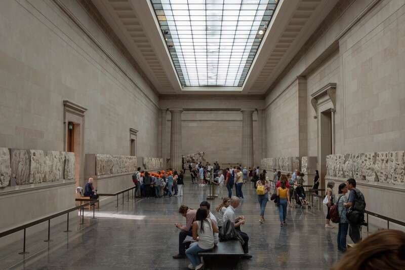 当地时间2023年8月23日,英国伦敦,游客正在参观大英博物馆的希腊帕台农神庙大理石雕塑。