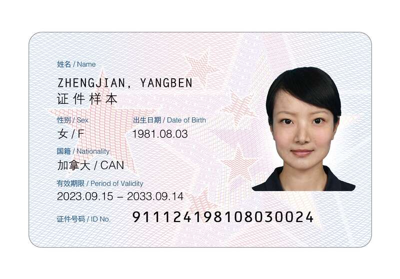 新版外国人永久居留身份证样证。国家移民管理局供图