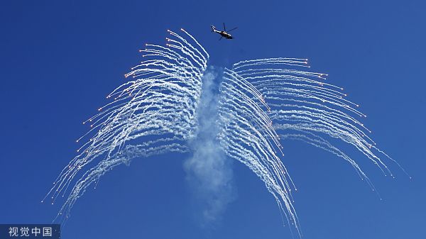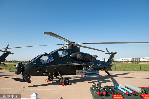2023年9月14日,第六届中国天津国际直升机博览会启幕,陆军武直10攻击直升机在静态区展示。