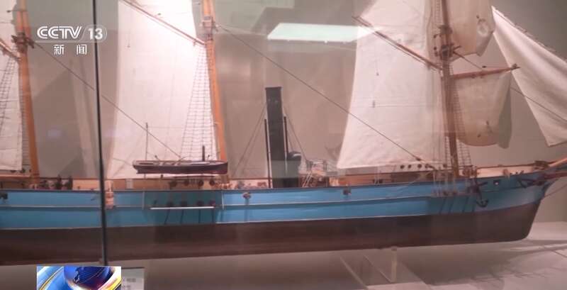 总台记者 林姗蓉:这个就是船政建造出来的第一艘军舰“万年清”号的模型,它是以蒸汽机作为动力带动整个船舶前进的。