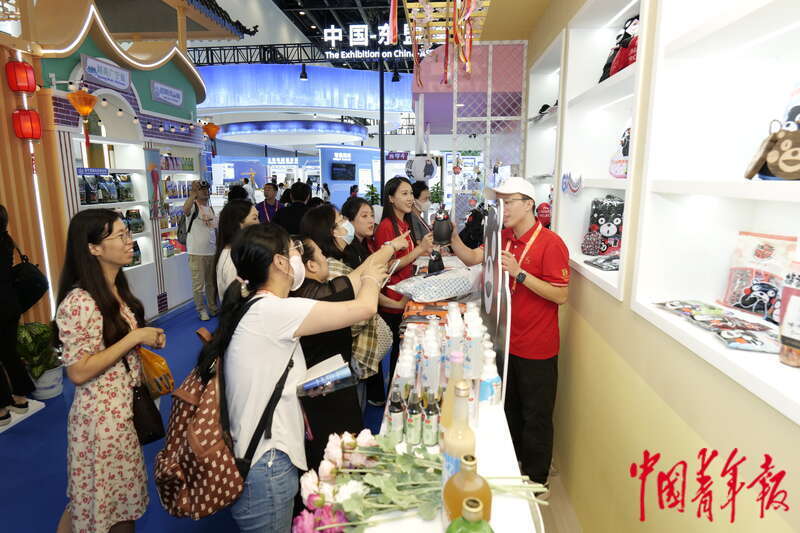 9月16日,广西南宁国际会展中心,在东博会“广西国际友城进东博”特装展区,志愿者正在介绍熊本熊周边文创。该展区总占地面积约400平方米,集中展示广西壮族自治区和各市30多个国际友城的展品和城市形象。广西外事办供图