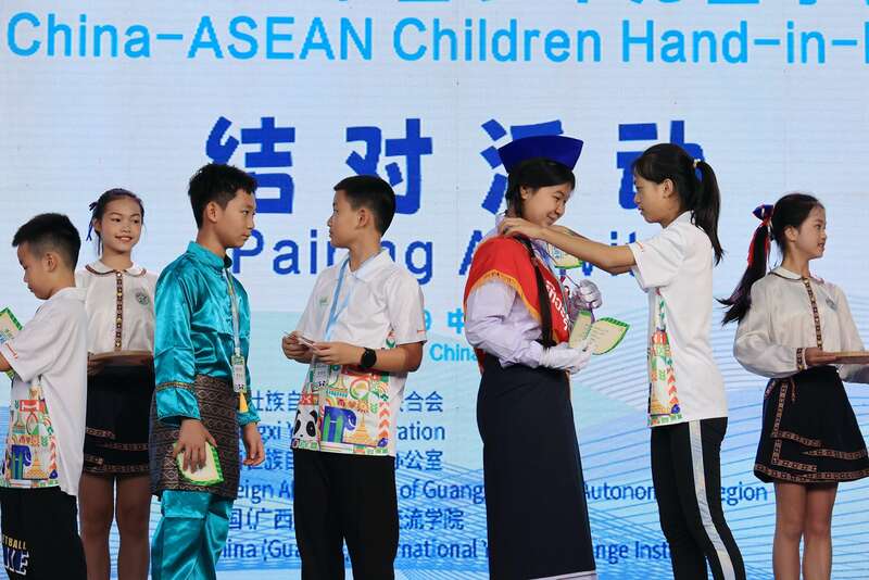 来自中国和东盟十国的100名少年儿童在启动仪式开展手拉手结对活动,中国、老挝、越南的少先队员开展了红领巾手拉手主题队日活动,表达了携手同行、传承友谊的美好心愿。