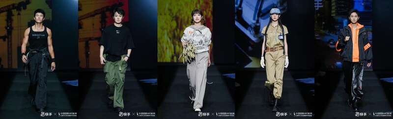 快手创作者羊毛月、搬砖小伟、郭柳玲、修理工大鹏、银火火、苗苗vivi进行走秀表演,充分展现5大系列30套时装的力量感与时尚感。