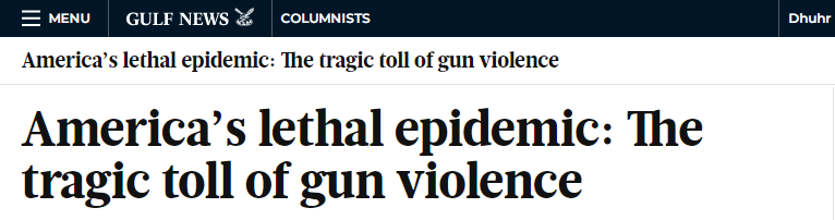 阿联酋《海湾新闻》(Gulf News)网站也在14日的文章中指出,美国的枪支暴力是一种致命的“流行病”。仅2023年前8个月,全美各地就发生了470起大规模枪击事件,枪支暴力造成的死亡人数更是超过了2.5万。更为糟糕的是,美国平均每天有22名年龄在17岁及以下的未成年人因枪支而死亡。