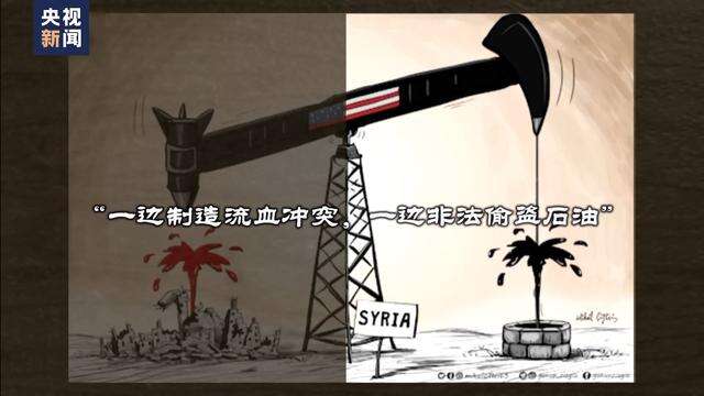 土耳其政治漫画家奇夫茨则用漫画讽刺美国的叙利亚政策是“一边制造流血冲突,一边非法偷盗石油”。