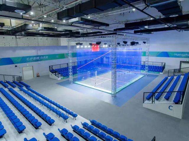 走进杭州奥体中心国博壁球馆,三面蓝色的半透玻璃墙配上蓝色的座椅,让人感觉仿佛置身在海底观赛。这个高颜值的场馆由展厅临时改建而成,馆内的LED屏幕、观众坐席、消防器材等采用了租赁方式。杭州奥体中心国博壁球馆设施运维主任周聪聪说,赛后场馆内所有材料还可拆除,实现二次利用。“像壁球馆的场地,其中有一片将会送给亚运会的博物馆,另外的七片场地,将会提供给社区、学校、教育机构,继续为推广壁球运动持续发挥作用。”