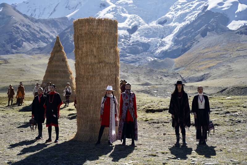 这场大秀选用的“模特”都是藏族姑娘小伙,其中有教师、有学生,还有合作社的手工艺匠人,旨在更原本地展现藏族风情。同时,大秀现场布景都是用刚收割青稞秸秆搭建的,结束之后全部散开为牦牛草料,将最大程度减少对雪域牧区当地生态环境的影响。