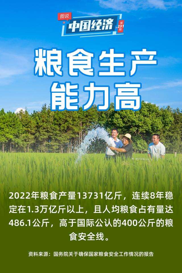 今年以来,极端气候干扰全球农业生产,关于粮食安全的担忧在全球蔓延。就我国粮食生产情况而言,国务院关于确保国家粮食安全工作情况的报告显示,2022年,我国粮食产量13731亿斤,连续8年稳定在1.3万亿斤以上,且人均粮食占有量达486.1公斤,高于国际公认的400公斤的粮食安全线。