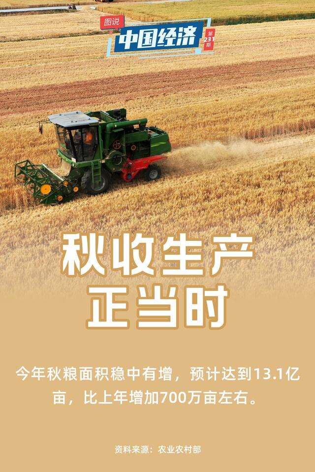 目前,我国早稻和夏粮均获丰收,秋粮面积预计13.1亿亩,比去年稳中有增,丰收有基础有希望。为保障今年秋收生产,我国继续从守护耕地、推进大中型灌区建设、保障农民种粮有钱赚不吃亏等方面入手,保障粮食安全,端牢中国饭碗。