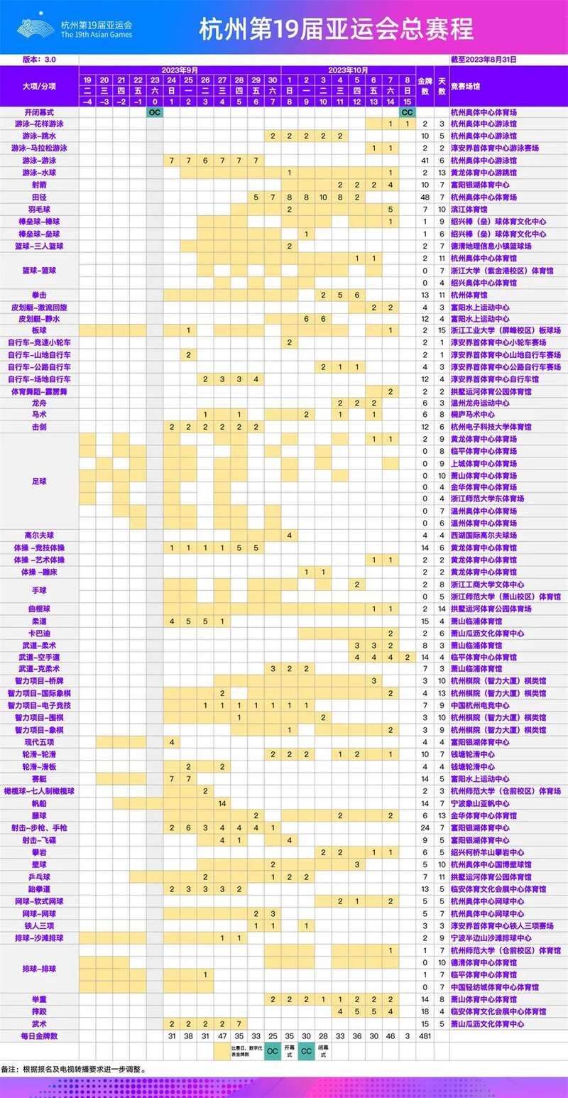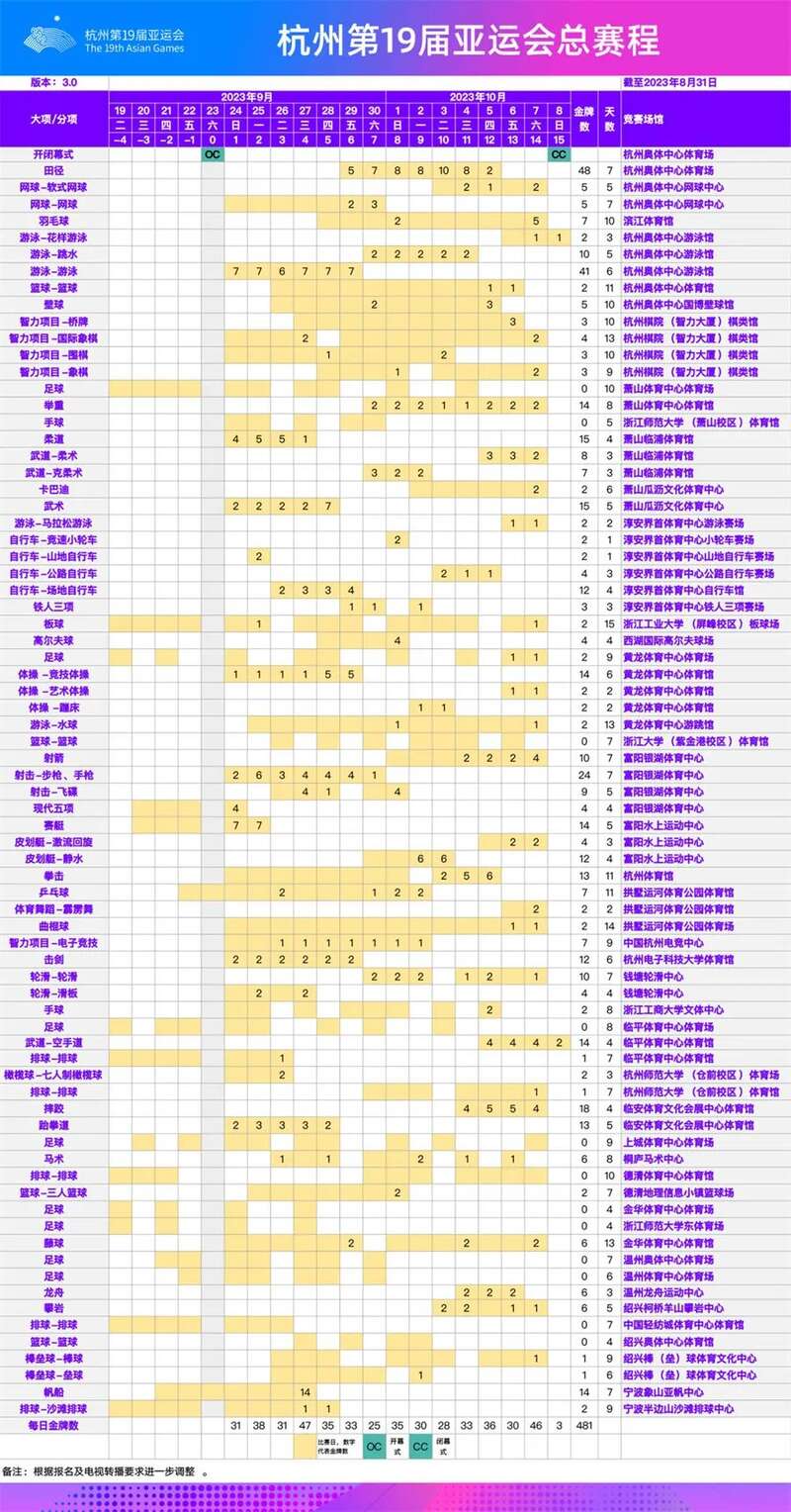 杭州亚运会总赛程