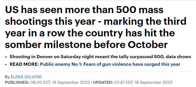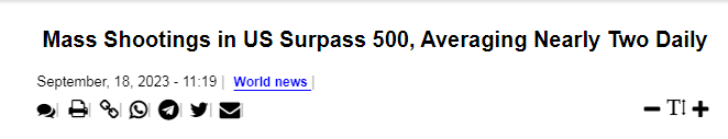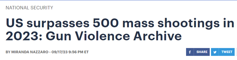 美国《国会山报》(The Hill)网站17日援引“枪支暴力档案”的数据发现,2023年到目前为止,美国发生的大规模枪击事件已经远高于2019年的414起以及2018年的335起。