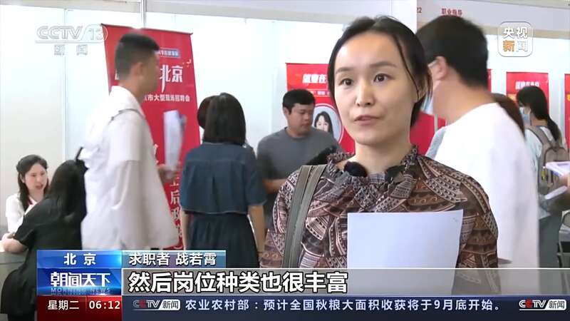 求职者 战若霄:我感觉今天来的求职者蛮多的,然后岗位种类也很丰富,能够让我尽快地了解国内的就业市场。