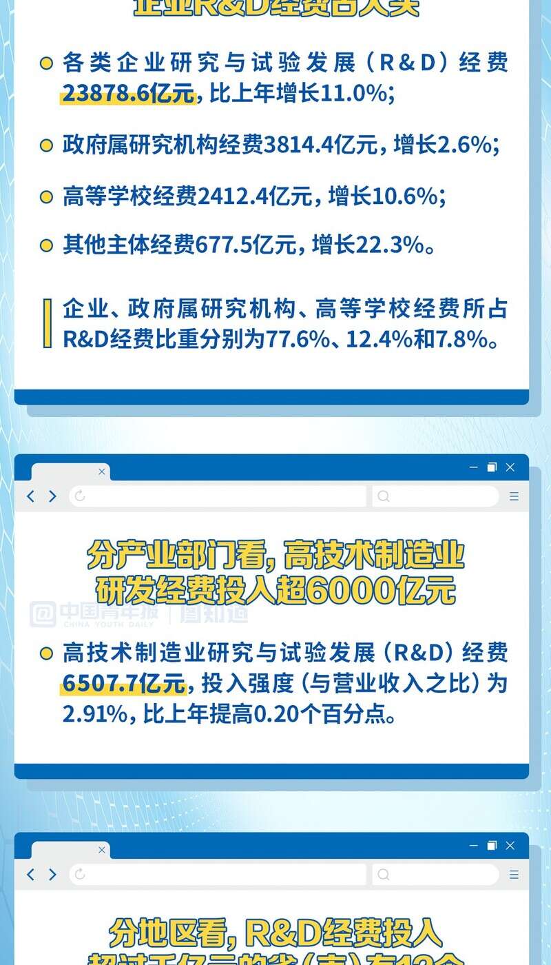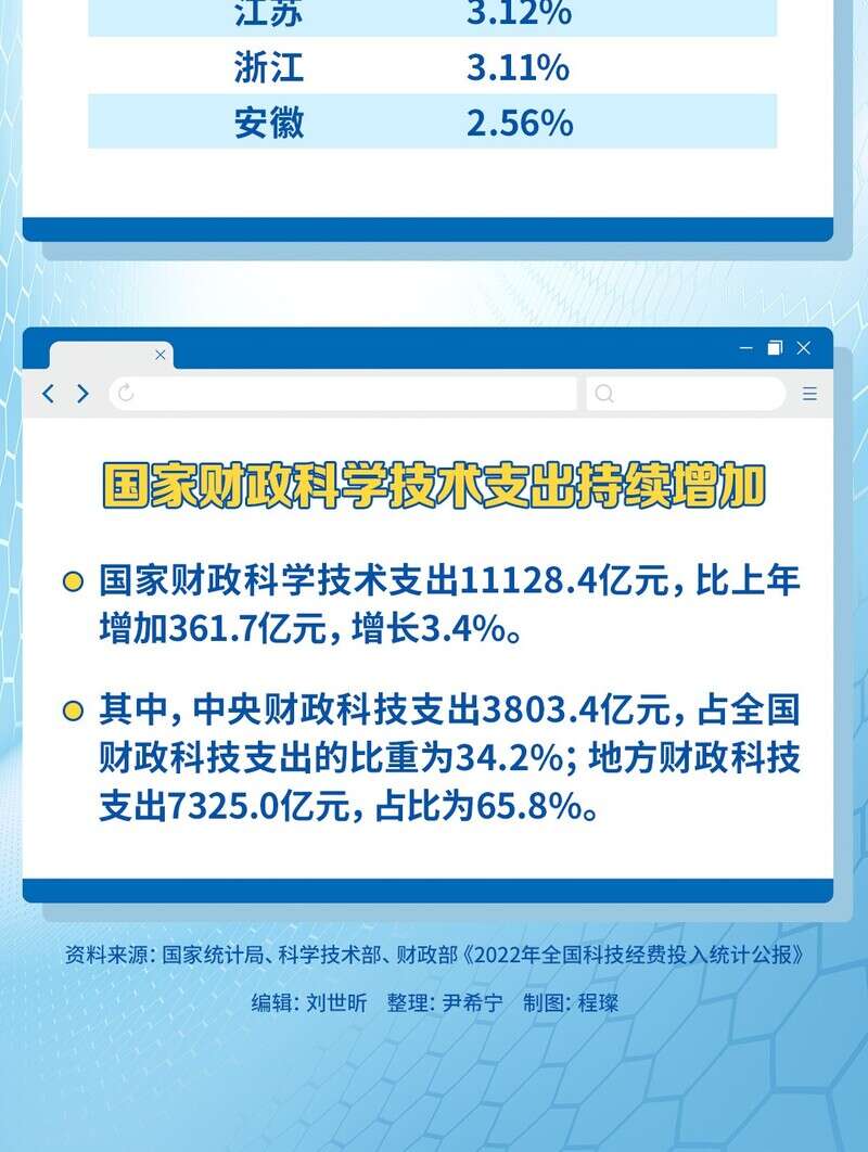 近日,国家统计局、科学技术部、财政部发布的《2022年全国科技经费投入统计公报》显示,2022年全国共投入R&D经费超3亿元;全国基础研究经费超2000亿元;有12个省(市)R&D经费投入超过千亿元……点击图片,读懂这份科技数据。