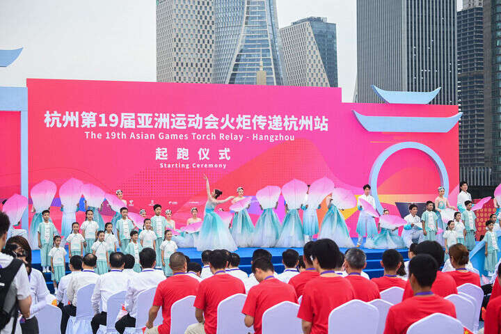 ↑这是杭州亚运会火炬传递杭州站起跑仪式现场。