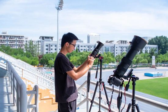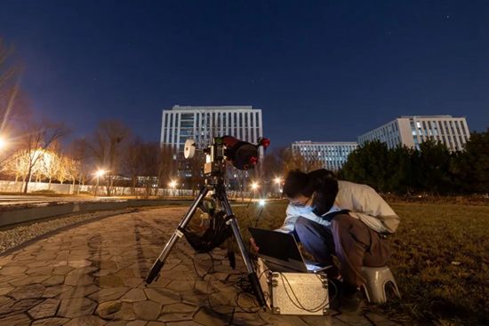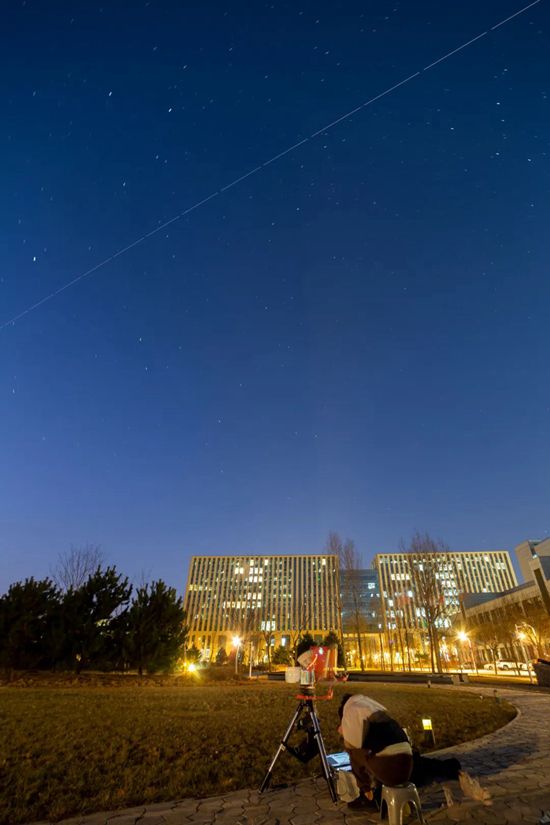 在北航沙河校区内拍摄(白线为中国空间站过境轨迹)