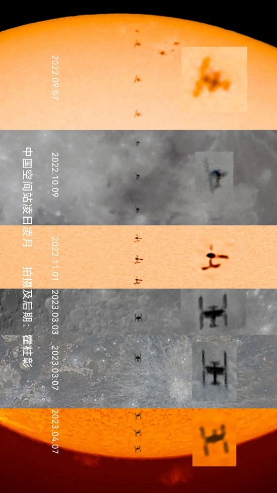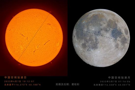 中国空间站凌日、凌月画面(摄影:霍柱彰)
