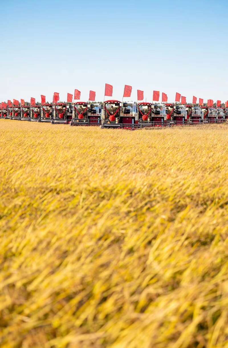 金秋九月,稻菽飘香。龙江大地,丰收正忙。收割机在田地间往来穿梭,农民笑在脸上,喜在心里。