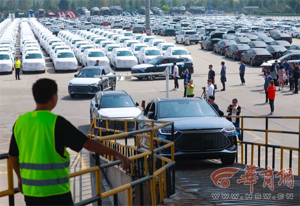 小汽车开进大火车,再由大火车开出中国,驶向全国各地。与一般货物相比,汽车的运输方式让人眼前一亮。“商品车可以直接开进笼车车厢内,轮胎有绑带固定,车厢口还设置有升降平台,可以根据商品车的大小高度进行上下的升降,保证车辆可以正常进入车厢。”中铁特货物流股份有限公司西安分公司市场部部长曹屏说,“商品车的作业场地共计有22.5万平方米,能够容纳将近一万台小汽车。根据我们的经验来看,一个车厢可以装9台商品车,而一列车有29节车厢,根据装载能力,一次性可以装261台商品车。”