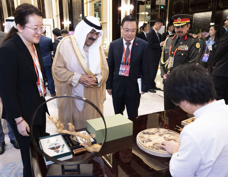 这是科威特王储米沙勒欣赏非遗展示。