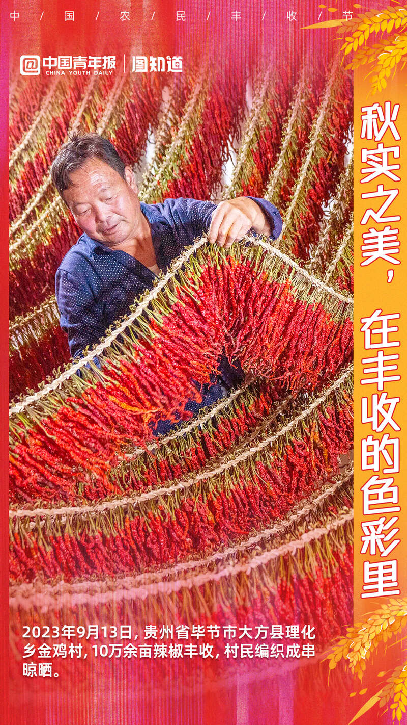 田野稻花香,渐知秋实美。克服灾害影响,今年粮食生产有望再获丰收。今天是第6个中国农民丰收节,锚定建设农业强国目标,宜居宜业和美乡村新画卷正在各地铺展。辣椒红、葡萄紫、鱼肚白……丰收的颜色,你可以数出多少种?