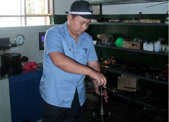 樊海峰还向车间主管提出自己设计一台试验台的想法。他先后用铁皮、无缝管、角铁、扁铁、废旧的压力试验平台、蛇皮管等小配件,组装好一台试验各种软管的试验台,节省了成本并节约检修时间。