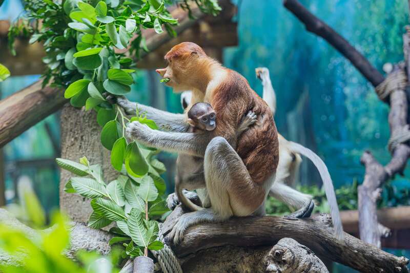 长鼻猴妈妈带着幼崽。邓泳怡/摄