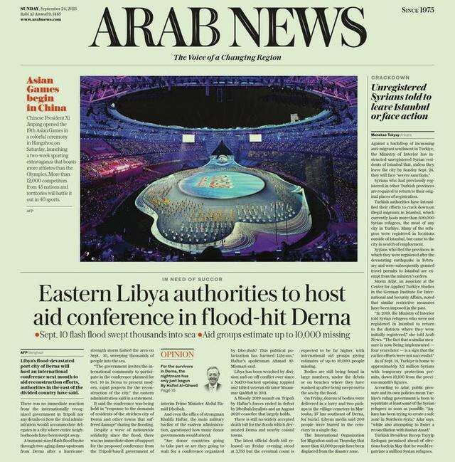 沙特阿拉伯24日出版的《阿拉伯新闻报》(Arab News)以头版图文的方式呈现亚运会开幕盛况,用了“五彩斑斓”来形容这一场开幕式,并介绍本届亚运会的运动员人数甚至超过了奥运会,来自45个国家和地区超过12000名运动员将在40个运动大项中展开角逐。