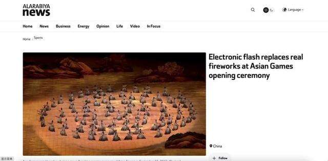 总部位于迪拜的阿拉比亚电视台英文网(Alarabiya News)23日刊发文章,重点关注本届亚运会用电子烟花取代传统烟花,彰显了绿色环保理念。此外,开幕式上的3D动画、数字火炬手也是科技感十足。文章还注意到了亚运会上众多充满地方特色的非奥运项目,比如龙舟、武术和卡巴迪等。文章评价,“481个运动小项给规模较小的代表团更多机会来赢得奖牌。”