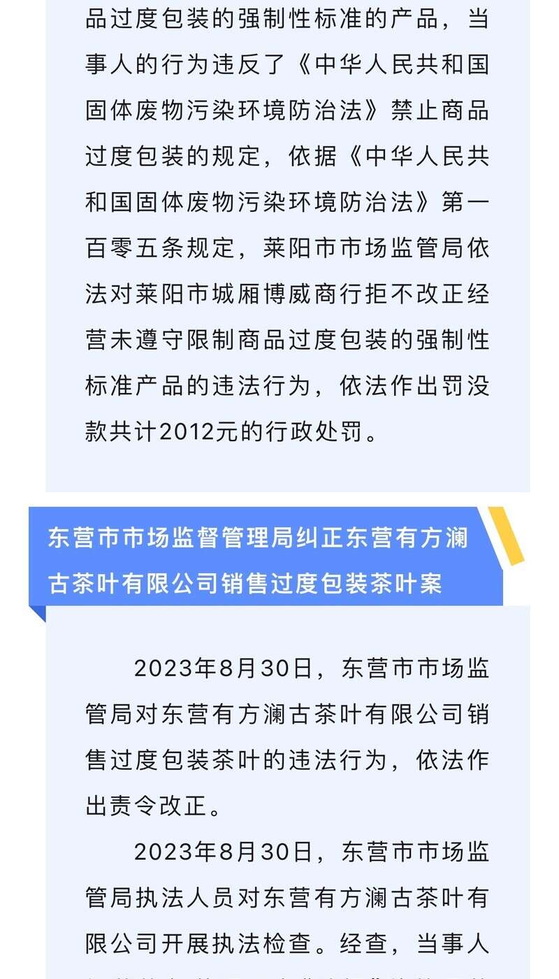 9月24日,山东省市场监督管理局公布2023年第一批商品过度包装查办典型案例: