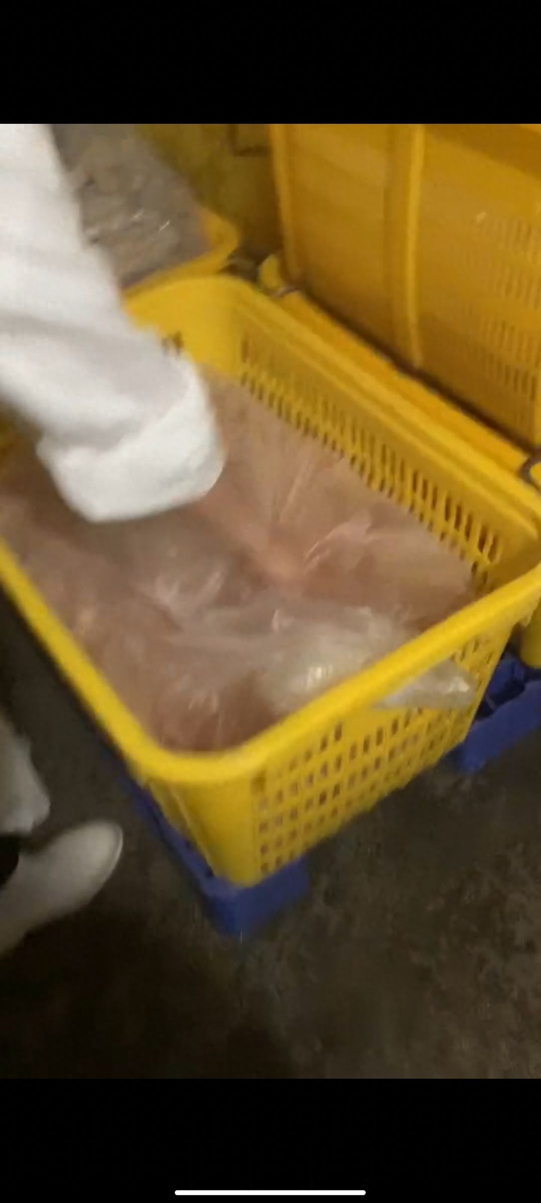 另一身着白大褂的人士表示,这是因为水流到地板下面去了,“物料都是新鲜的”,并随即将包装袋掩盖。在回应“肉怎么是黑的”问题时,该人士称是因为放了老抽腌制。