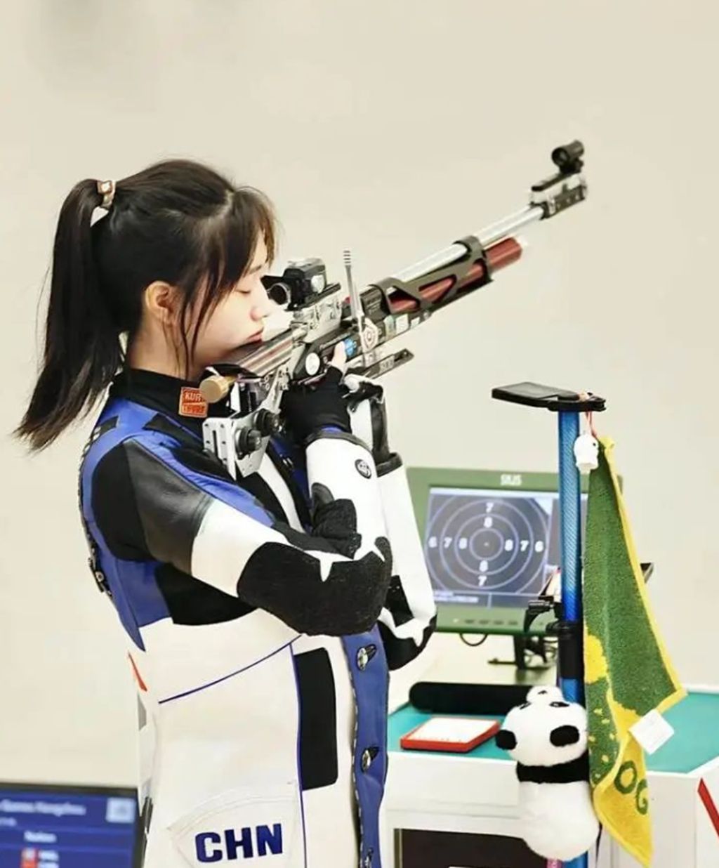 早前比赛时黄雨婷在枪托上挂了一只小熊猫和一条卡通毛巾,一旁亚运证件的挂绳上,则别着当下火热的徽章……这位处处藏着可爱小心思的姑娘,比起赛来,又是另一番模样。这一反差戳中了很多人,很多网友说:“挂最萌的熊猫,打最狠的枪”。在赛后采访中,黄雨婷介绍这只熊猫是自己收到的礼物,希望可以带来好运。