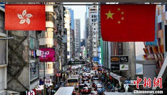 北角海滨悬挂国旗及特区区旗庆国庆。