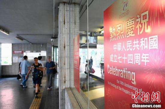 湾仔地铁站张贴的庆国庆竖幅。