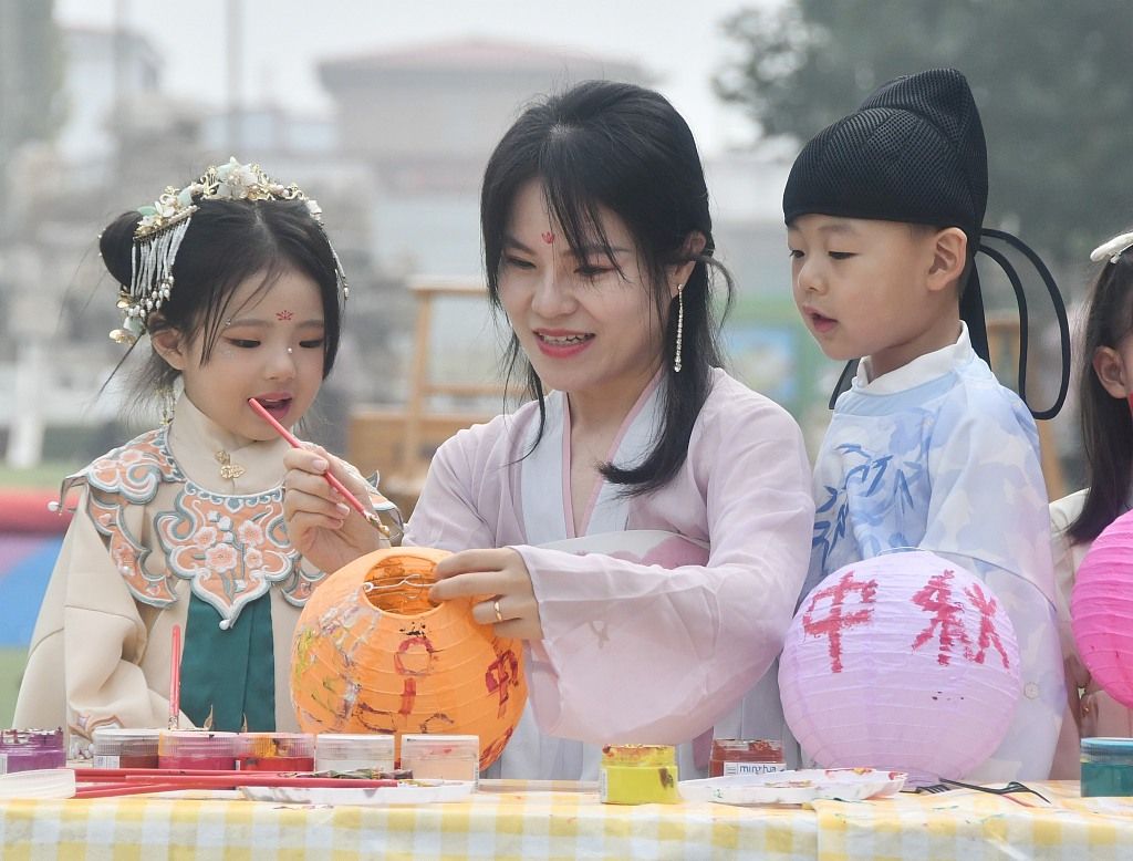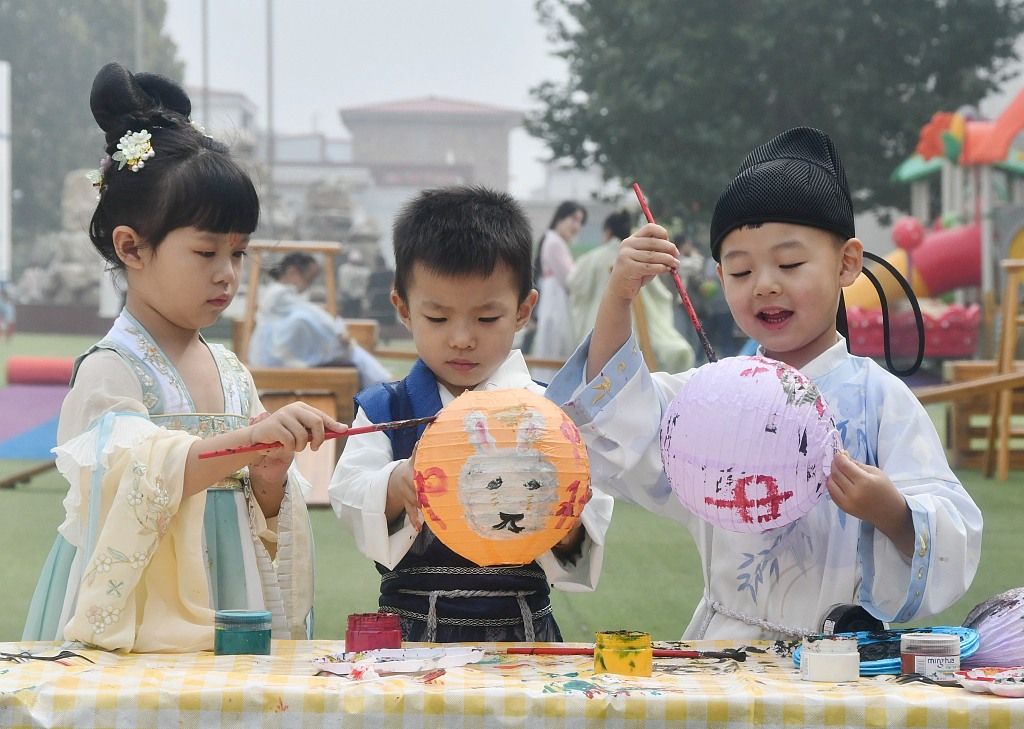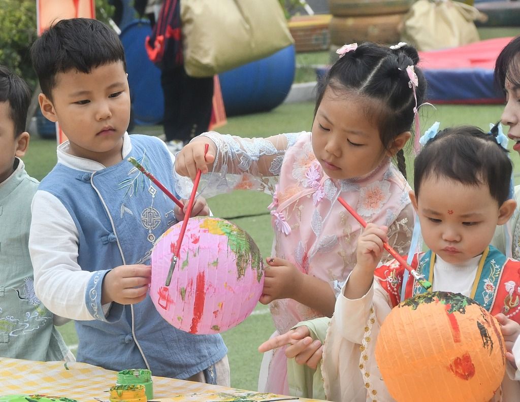 9月28日,河北邯郸,永年区洺州幼儿园开展“彩绘灯笼迎中秋”主题活动,孩子们在老师的指导下彩绘灯笼,感受传统文化的魅力,喜迎中秋佳节的到来。