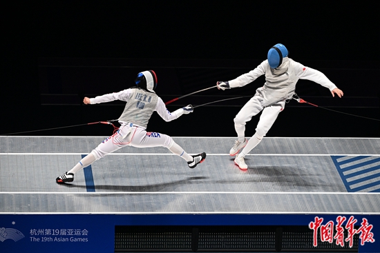 9月27日,杭州亚运会击剑项目团体赛打响,男子团体花剑决赛中,中国队以38∶45的比分不敌韩国队,摘得银牌,中国重剑女团在半决赛中同样负于韩国队,收获铜牌。