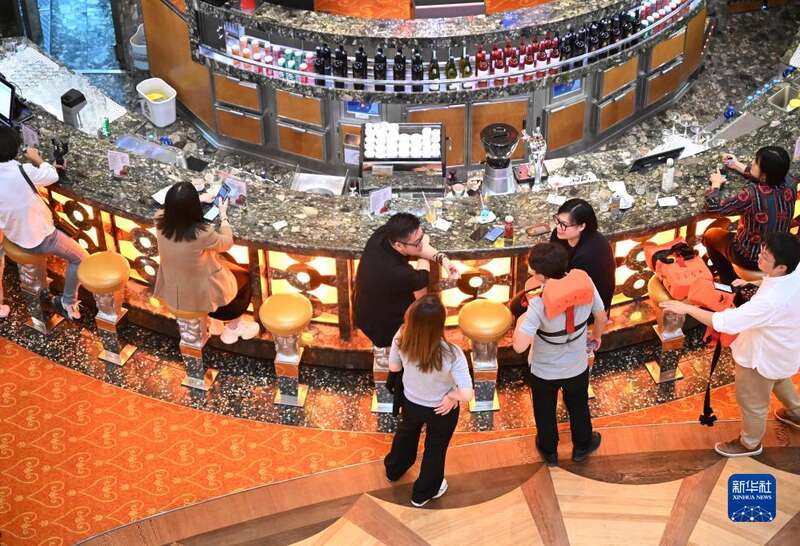 9月27日,游客在中国船舶集团旗下爱达邮轮“地中海”号邮轮上聊天。