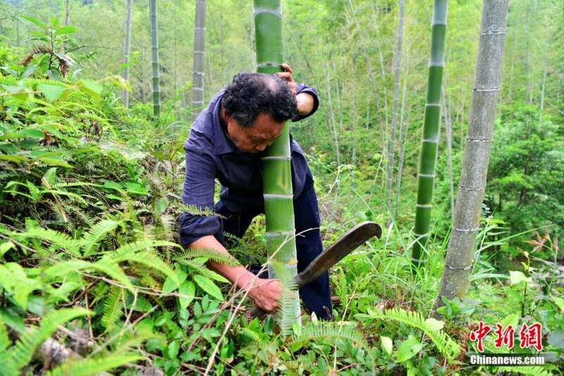 福建省将乐县申报的“将乐竹纸制作技艺”被列入中国第二批国家级非物质文化遗产名录。图为竹纸制作技艺传承人刘仰根在将乐县砍伐竹材。张斌 摄